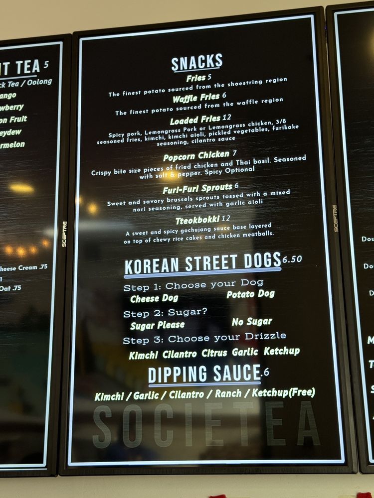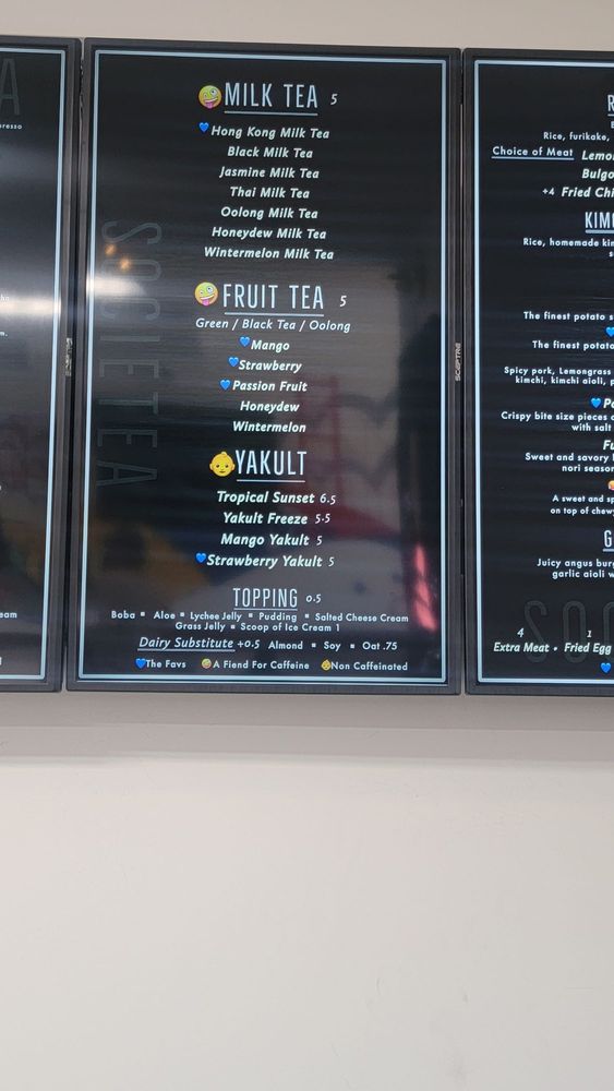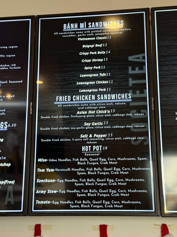 Societea Teahouse & Eatery in San Bruno offers a delightful fusion of Asian flavors with a twist. Their menu includes an array of sandwiches like Lemongrass Tofu, Chicken, and Pork, as well as specialties like Bulgogi Beef and Vietnamese Classic. Their unique drinks, such as Neapolitan Layered and Brown Sugar Matcha, are a must-try. The cozy ambiance with ample seating, free Wi-Fi, and board games creates a perfect hangout spot. Customers rave about the welcoming owner, quality food, and consistent drinks. With amenities like outdoor seating, catering options, and a military discount, Societea Teahouse & Eatery truly caters to all. Satisfy your cravings for flavorful food and refreshing drinks at this charming teahouse.